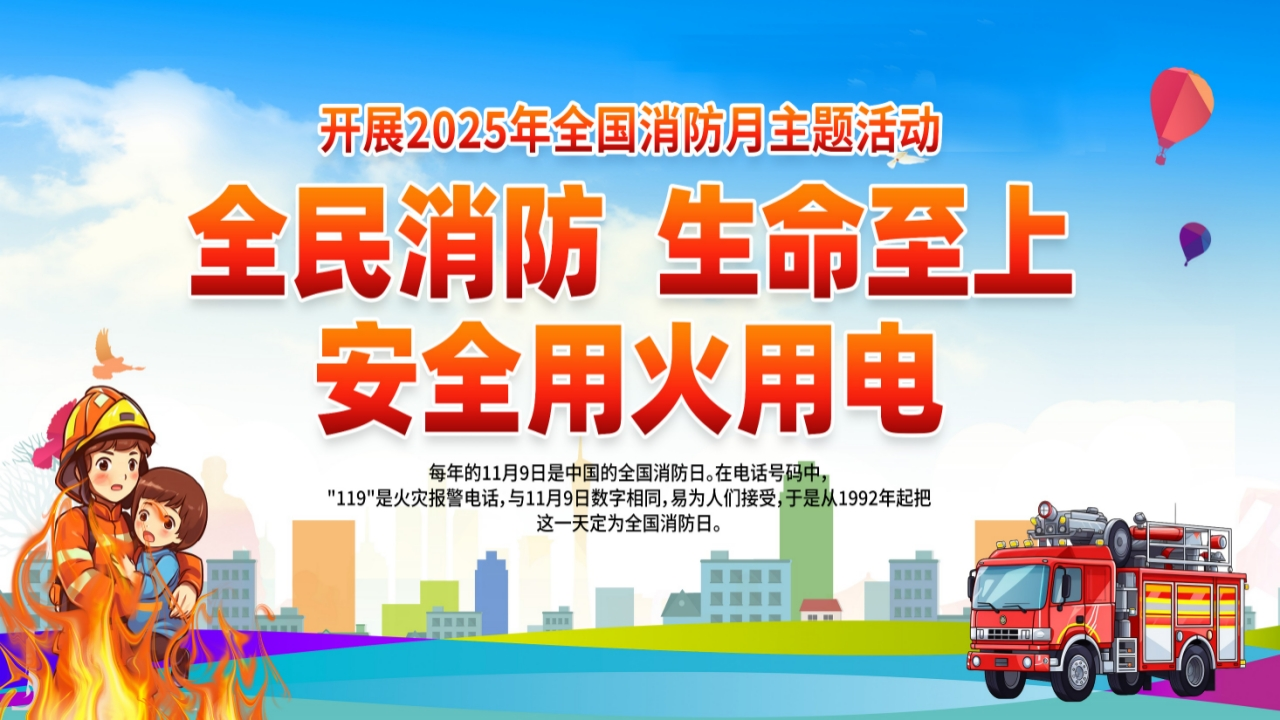 国2025年119消防宣传日全民消防生命至上安全用火用电