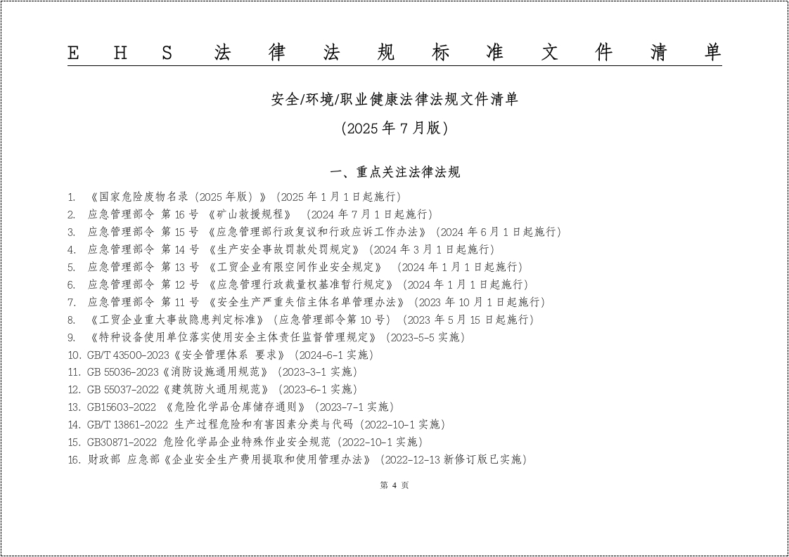 2025年8月版EHS法律法规标准文件清单丨149页2026026-EHS文库网