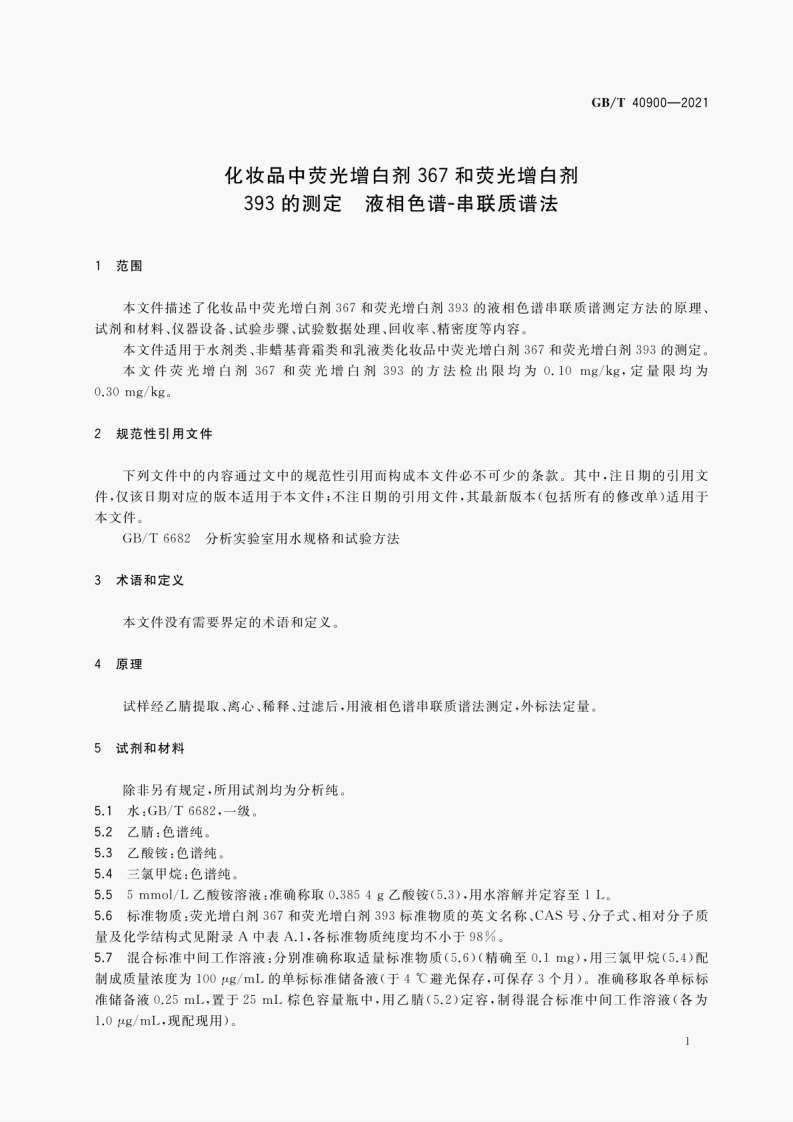 GB∕T-40900-2021-化妆品中荧光增白剂367和荧光增白剂393的测定-液相色谱-串联质谱法-EHS文库网